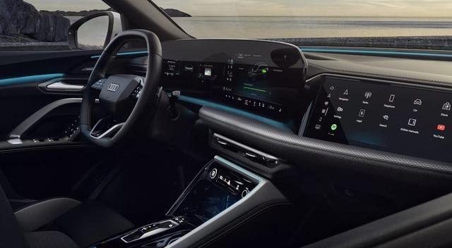 外观上,新车延续燃油版设计风格,前脸八边形格栅搭配大尺寸网状造型,前包围两侧有银色装饰件,侧面线条流畅,搭配贯穿式尾灯组,左后翼子板处设有充电接口。内饰采用最新家族化座舱,配备11.9英寸液晶仪表屏、14.5英寸中控MMI触摸显示屏,副驾前方还设有10.9英寸娱乐屏。